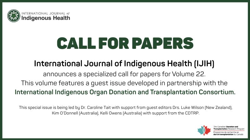 The Consortium is an international network dedicated to improving organ donation and transplantation systems for Indigenous Peoples. The Consortium members include Indigenous and allied researchers, clinicians, health professionals, and Indigenous persons with lived experience.