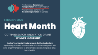 Heart Health Month: Supporting Innovation that Improves Transplant Outcomes February is Heart Health Month—a time to reflect on the importance of cardiovascular health and to spotlight the research that helps improve outcomes for people living with heart disease and transplantation. At CDTRP, supporting innovative, patient-centred research is central to our mission, and our [...]