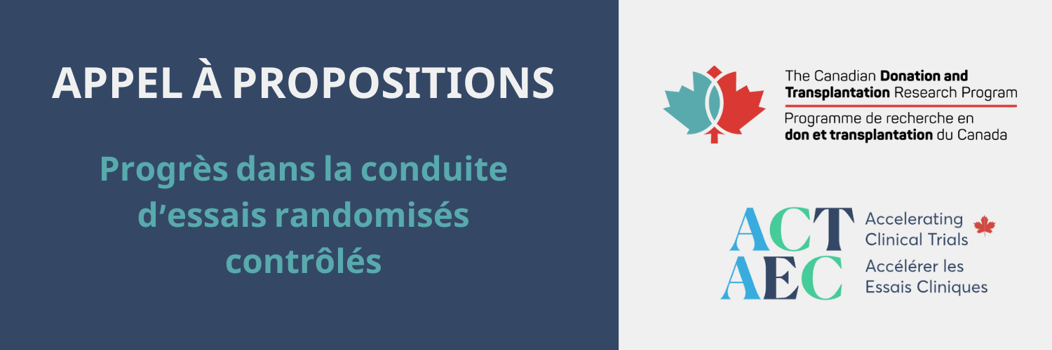Le Consortium Accelerating Clinical Trials / Accélérer les Essais Cliniques (ACT/AEC) a le plaisir d’annoncer un appel à propositions intitulé : Advances in the Conduct of Randomized Controlled Trials (Progrès dans la conduite d’essais randomisés contrôlés).