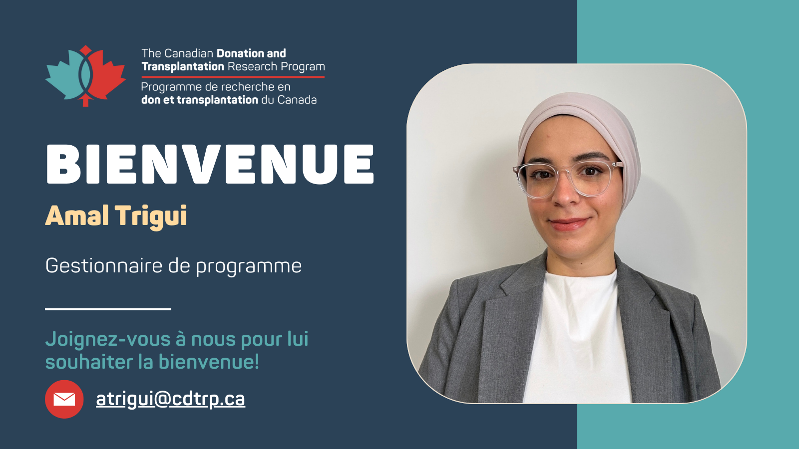 Bienvenue à la nouvelle gestionnaire de programme, services de recherche: Amal Trigui
