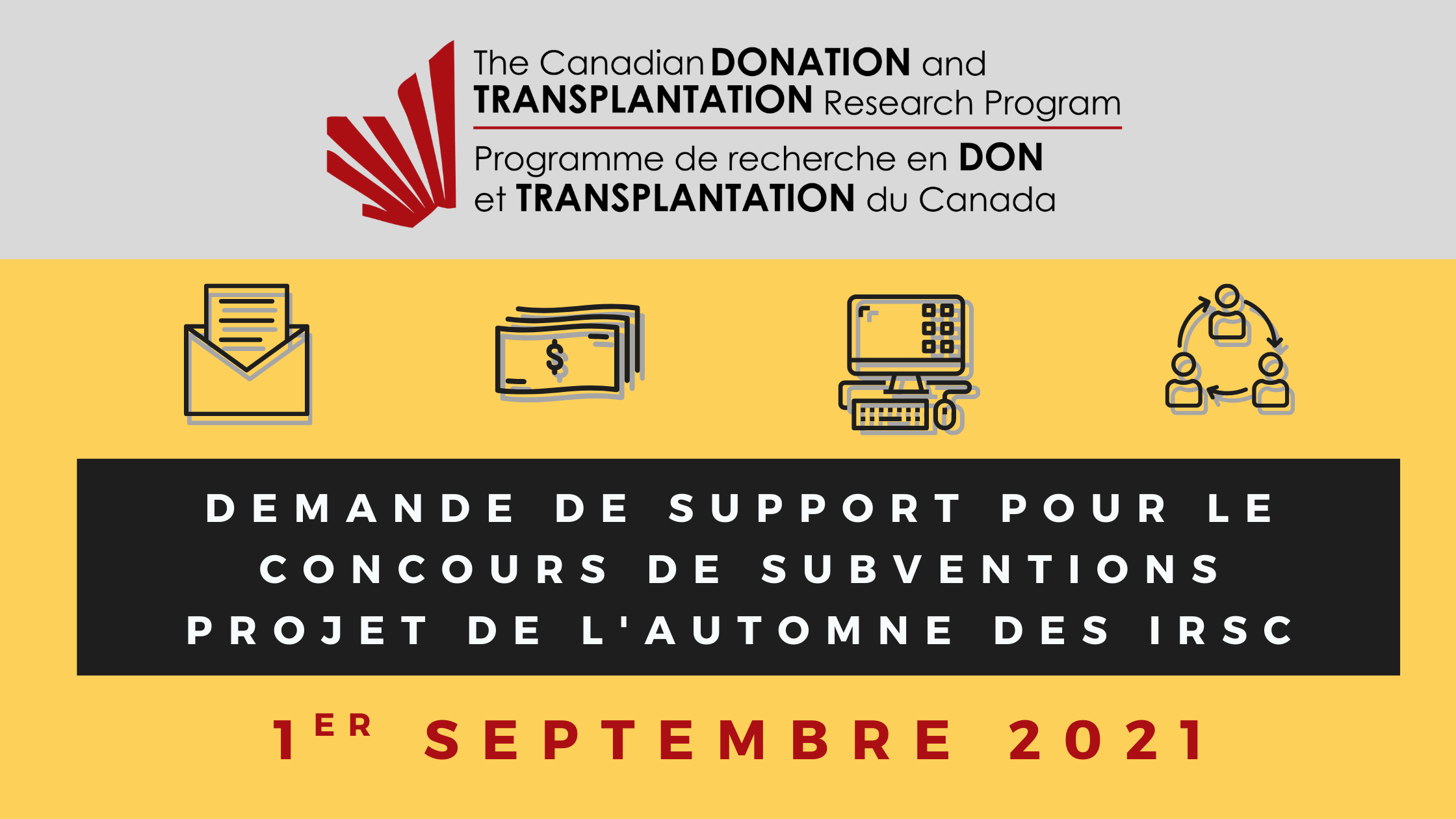 - Date limite du Concours de subventions Projet automne 2021 des IRSC : 15 septembre 2021