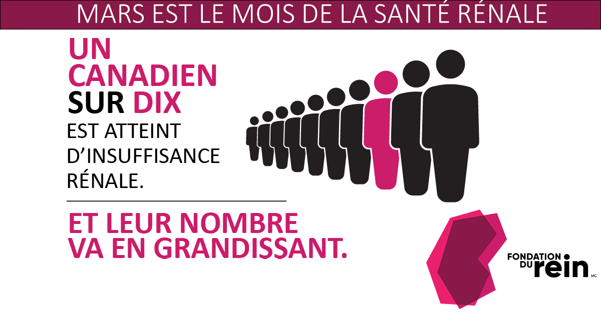 La Fondation canadienne du rein vous invite à son webinaire Suis-je à risque ? La santé rénale pour tous, à l’occasion de la Journée mondiale du rein, le 10 mars.