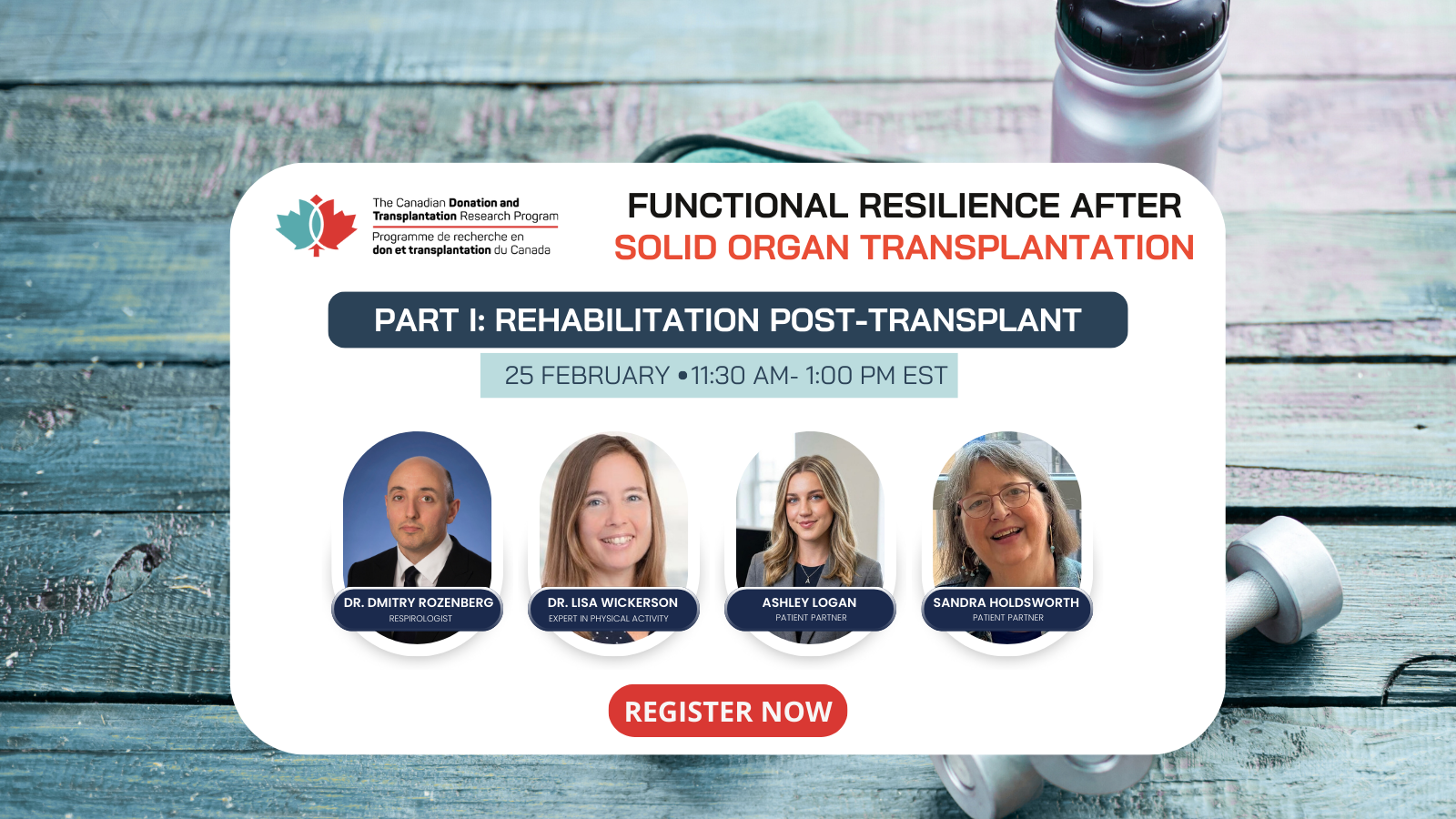 En vous inscrivant, vous serez automatiquement inscrit pour les quatre séances, mais vous êtes libre de choisir celles auxquelles vous souhaitez participer. Chaque séance mettra en lumière des stratégies pratiques fondées sur des données probantes, ainsi que des témoignages de personnes ayant reçu une greffe, afin de les aider à rester actifs, motivés et résilients.
