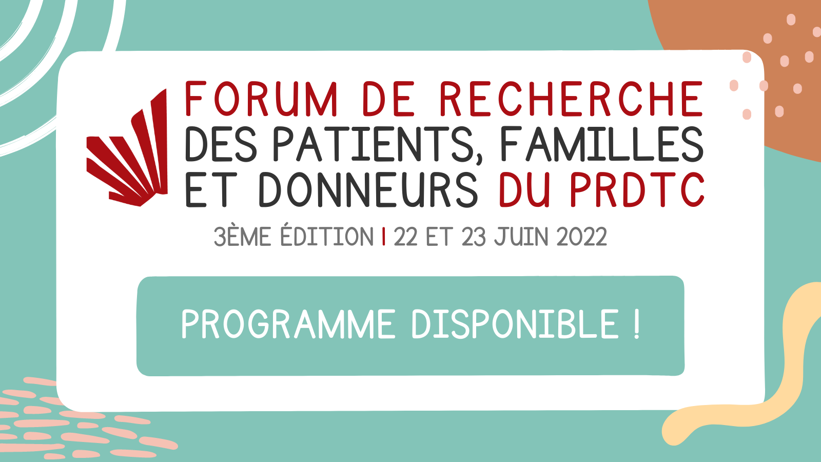 Programme maintenant disponible : Forum de recherche des patients, familles et donneurs 2022 du PRDTC